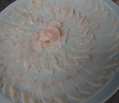 | 右の写真のような1升瓶よりも大きな2〜3kg以上の最高級の天然のトラフグを使用します。 コース料金が時価になりますが、11月後半から1月半ばまでは2万円を超えてしまうこともありますが、15,000円〜18,000円程度の場合が多いです。お気軽にお問い合わせください。 |
